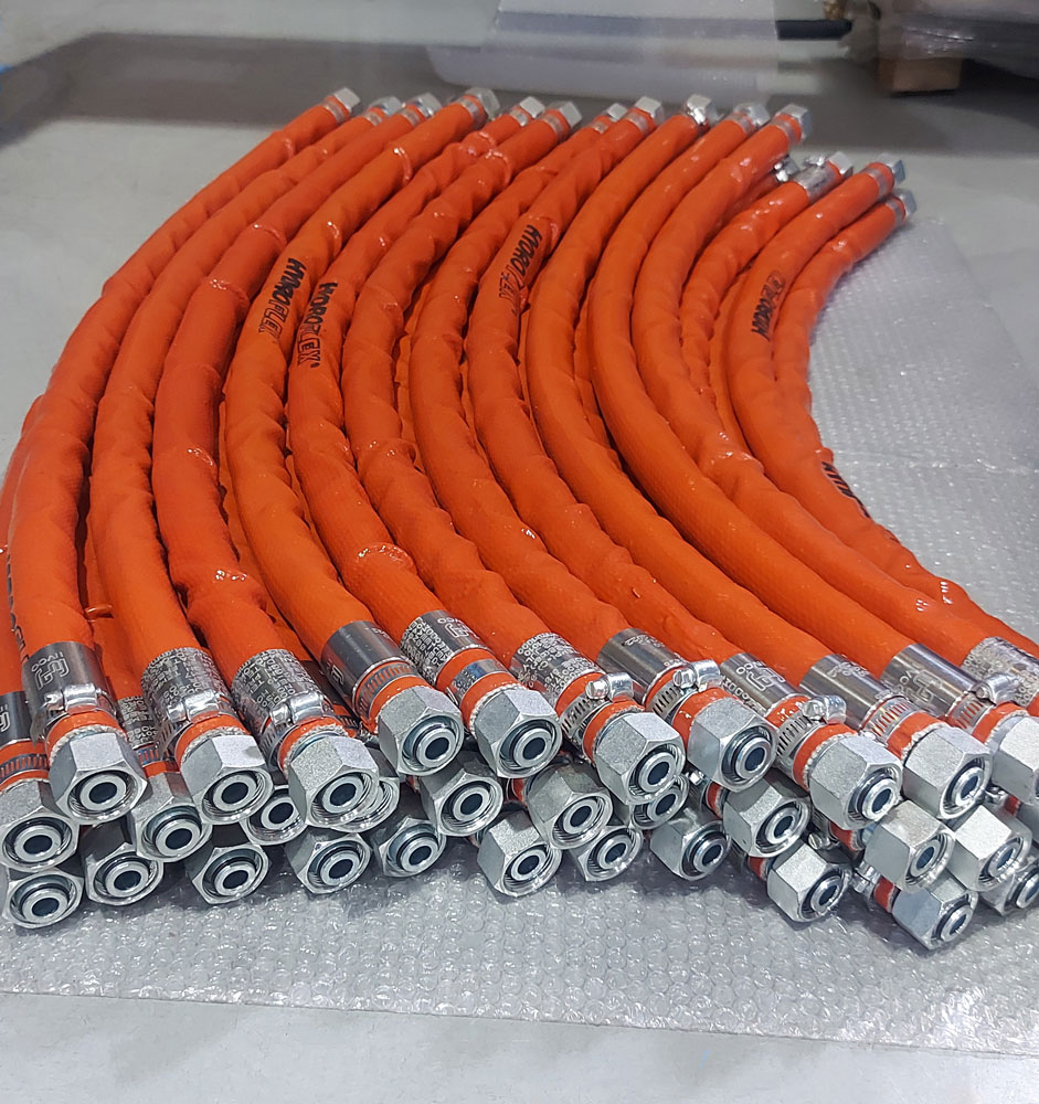 تُستخدم الخراطيم الهيدروليكية لتمرير السائل، وهو بشكل عام زيت هيدروليكي، في دائرة مغلقة.